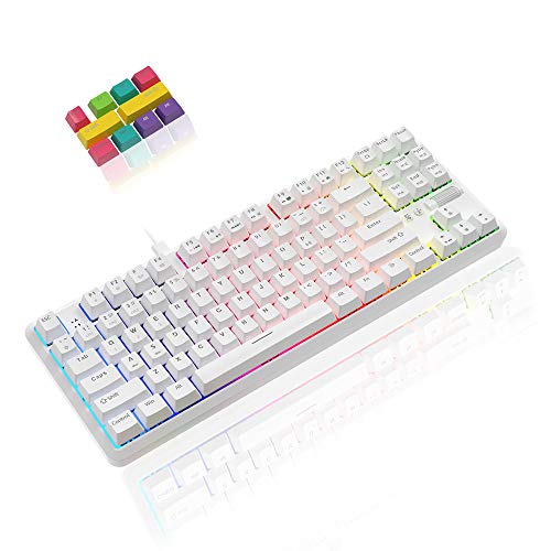 • 【Unique Keycap and Scroll Wheel】White mechanical keyboard has 10pcs mixed-color keycaps to DIY your keycaps, the friendly scroll wheel design can adjust the volume and light brightness faster; 80% keyboard provides 18 mode RGB backlight effect, cool mode allows you to enjoy more fun when you gaming or or typing at night.